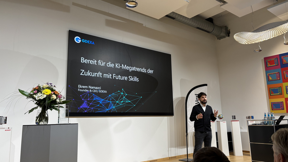 Im Mittelpunkt des Abends stand der Impulsvortrag von Ekrem Namazci, Gründer und Geschäftsführer der GDEXA Digital Labs GmbH. Unter dem Titel „Megatrends der Zukunft in Bezug auf die Wirtschaft – wie sich die Welt in den nächsten zehn Jahren verändern wird“ zeigte er eindrucksvoll, wie Themen wie Künstliche Intelligenz, digitale Technologien, Nachhaltigkeit und neue Formen der Zusammenarbeit unsere Arbeitswelt zunehmend verändern. Sein Vortrag machte deutlich, dass Unternehmen, die den Wandel aktiv gestalten, auch künftig erfolgreich am Markt bestehen können.