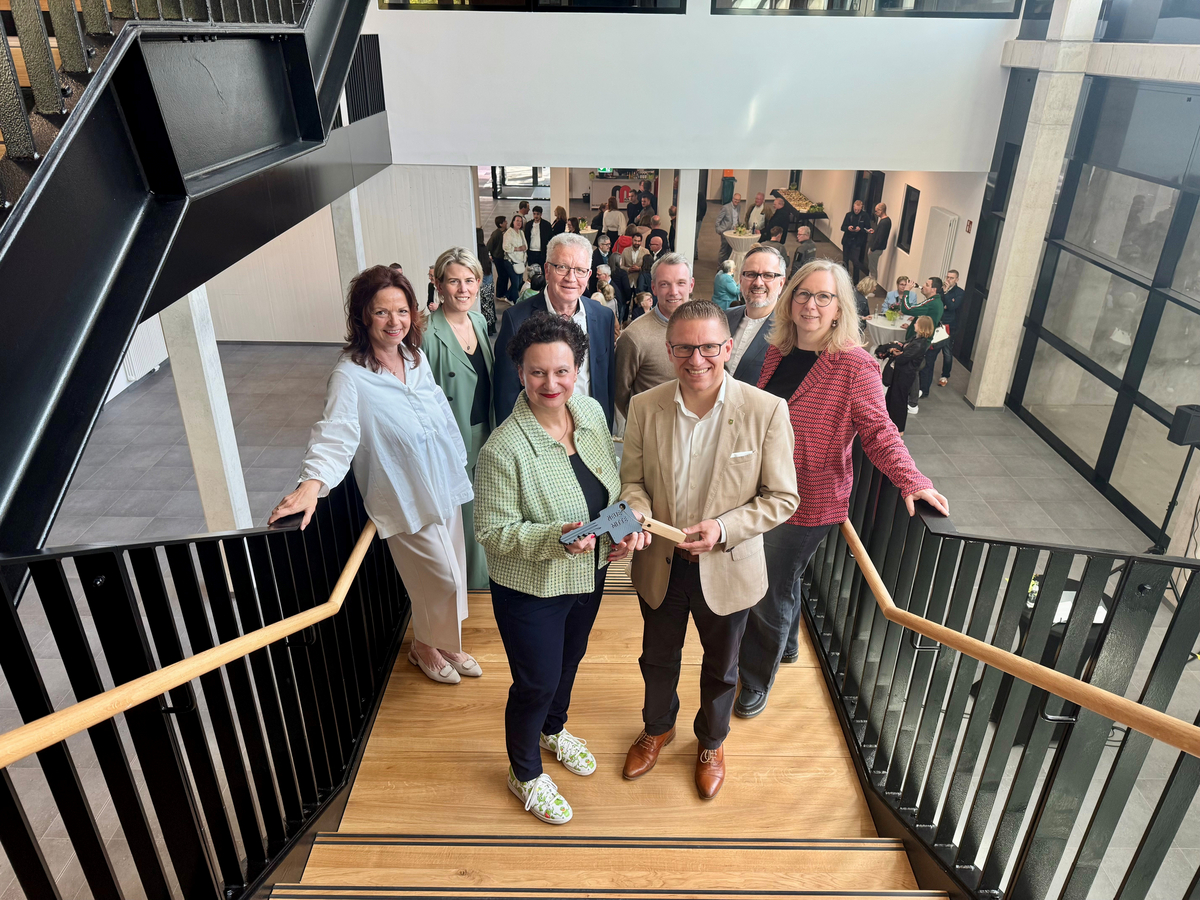 Mit der Übergabe der „Neuen Mitte“ an die Gesamtschule Verl ist ein weiterer wichtiger Bauabschnitt im bislang größten Schulbauprojekt der Stadt abgeschlossen. Der neue Gebäudeteil übernimmt künftig eine zentrale Funktion im Schulkomplex: als Verbindungsachse ebenso wie als moderner Lern- und Begegnungsort. „Heute wird aus einem Bauprojekt ein neuer Teil der Schule“, freute sich Bürgermeister Robin Rieksneuwöhner bei der Eröffnung und betonte: „Mit der Neuen Mitte übergeben wir der Gesamtschule einen Ort, der das Lernen und das Miteinander künftig nachhaltig prägen wird.“