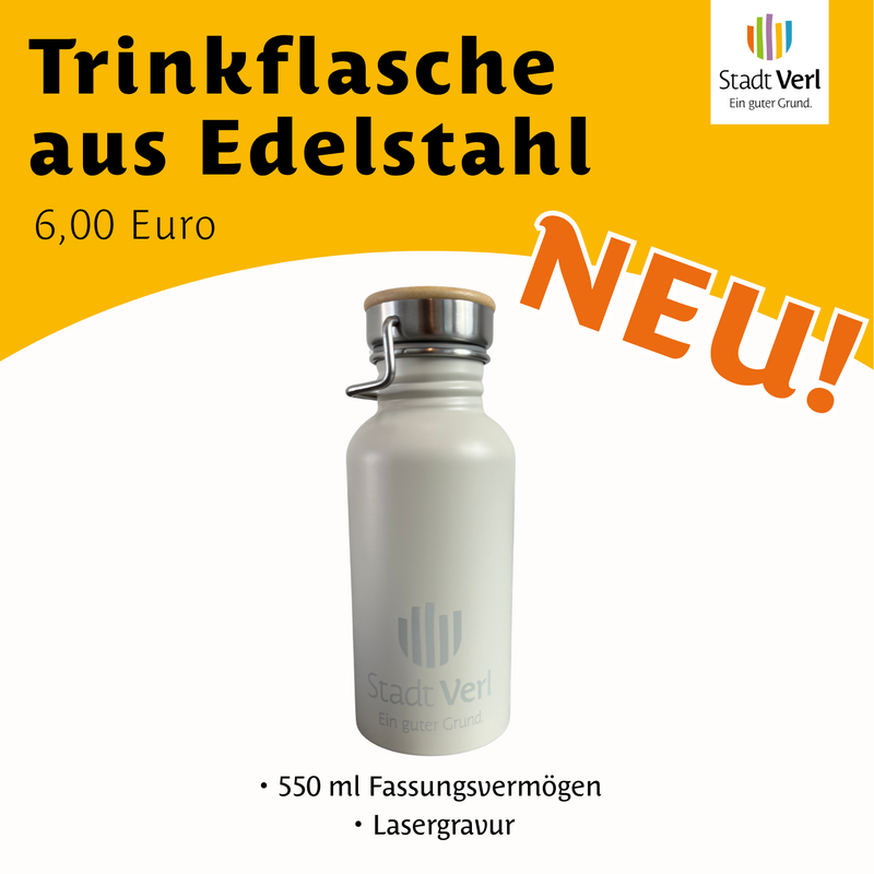 - NEU: Trinkflasche aus Edelstahl, Lasergravur, 550 ml Fassungsvermögen – 6,00 €